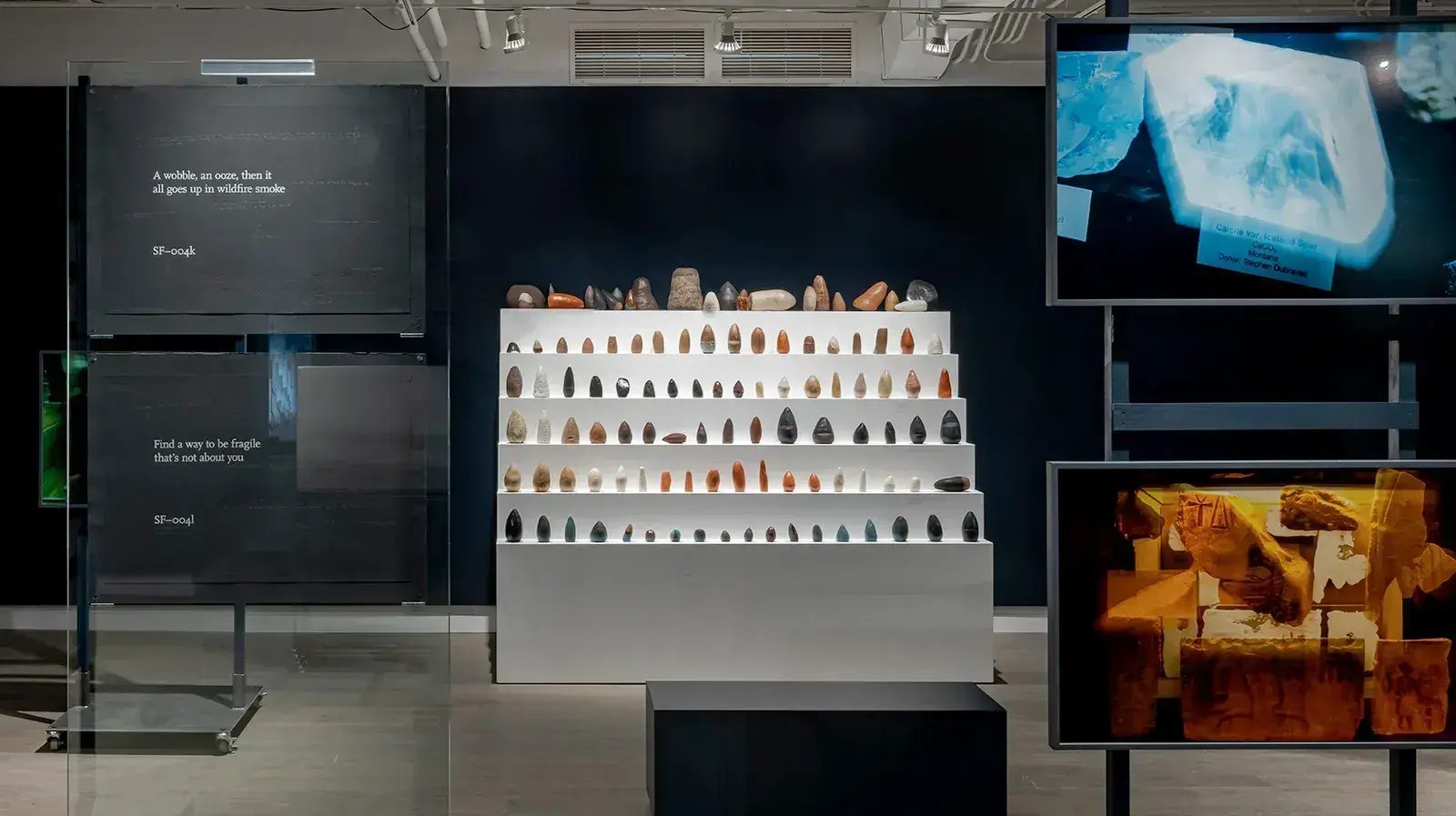 In his exhibition at the Koffler Gallery, A Heap of Random Sweepings, Sameer Farooq creates a series of displays that raise questions about provenance and repatriation, articulating new visions for repurposing the emptied spaces of museums devoid of their plunder. Submerged in an audio environment composed by Farooq’s collaborator, Gabie Strong, the artworks offer themselves as tools for meditation and self-reflection. Lyrical captions contributed by poet Jared Stanley unsettle the rigidly prescribed narratives of didactic labels. The assembly guides us to interrogate our relationship with art objects and to ponder on an intrinsic potential that transcends their aesthetic value.